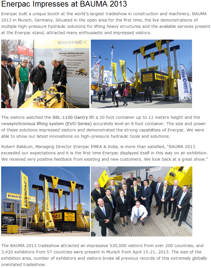 您現(xiàn)在的位置:首頁 ? 新聞中心 ? 新聞資訊 ? 恩派克Enerpac參加2013年寶馬展