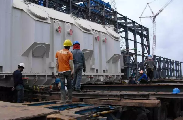 中國(guó)電建吊裝人在國(guó)外的一場(chǎng)變壓器平移工程。原作者很清晰地展現(xiàn)了水平液壓千斤頂與垂直液壓千斤頂?shù)呐浜掀揭瓢惭b技術(shù)?,F(xiàn)場(chǎng)中外員工通力協(xié)作,經(jīng)過(guò)垂直起升與枕木鋪設(shè)進(jìn)行滑移定位,出色了完成了這臺(tái)國(guó)產(chǎn)200噸重量的變壓器的安裝就位。