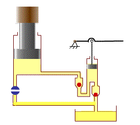 在平衡的系統(tǒng)中,比較小的活塞上面施加的壓力比較小,而大的活塞上施加的壓力也比較大,這樣能夠保持液體的靜止。所以通過液體的傳遞,可以得到不同端上的不同的壓力,這樣就可以達到一個變換的目的。