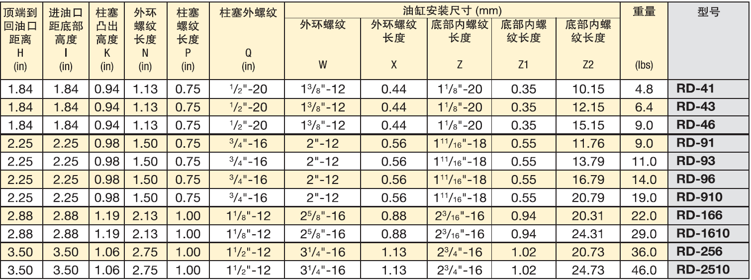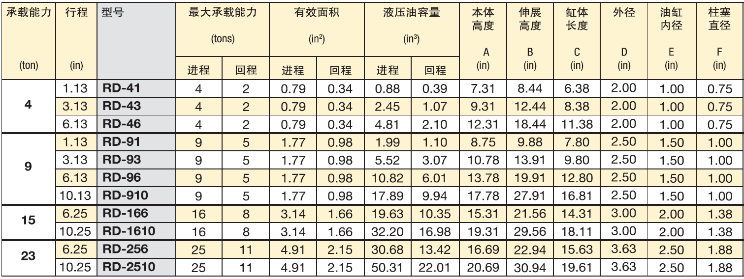 恩派克RD系列千斤頂參數(shù)表: